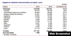 Cuba recibió en junio pasado un 61.2% más de visitantes procedentes de Estados Unidos que los registrados en el mismo periodo de 2015, aunque es Canadá el país que se mantiene líder en emisión de turistas a la isla, según datos de la Oficina Nacional de Estadística e Información (ONEI).