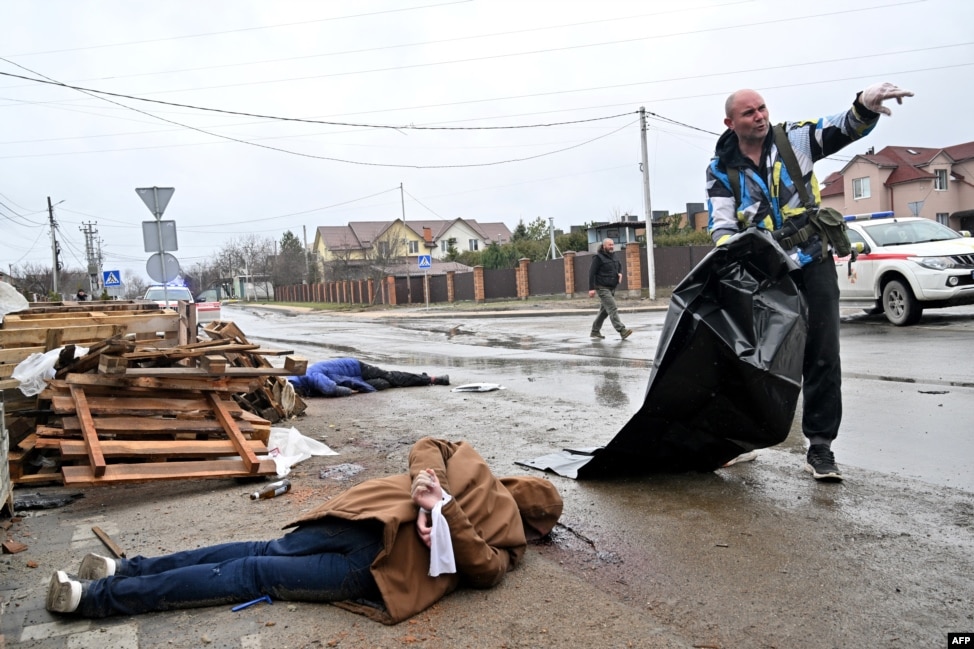 Recogida de cadáveres en las calles de Bucha tras ser liberada de las tropas rusas.