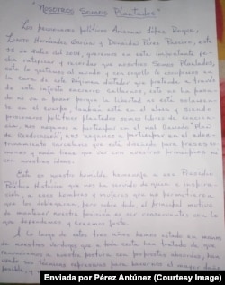 Desde Miami, donde reside, el expreso político Jorge Luis García Pérez, conocido como “Antúnez”, hermano de Loreto Hernández, dio a conocer parte del contenido de la misiva.
