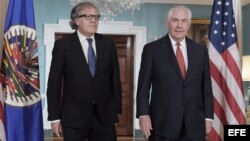 WASHINGTON- El secretario estadounidense de Estado, Rex Tillerson, recibió este viernes al secretario general de la Organización de Estados Americanos (OEA), el uruguayo Luis Almagro, con quien discutió sobre las elecciones regionales del domingo en Venezuela.